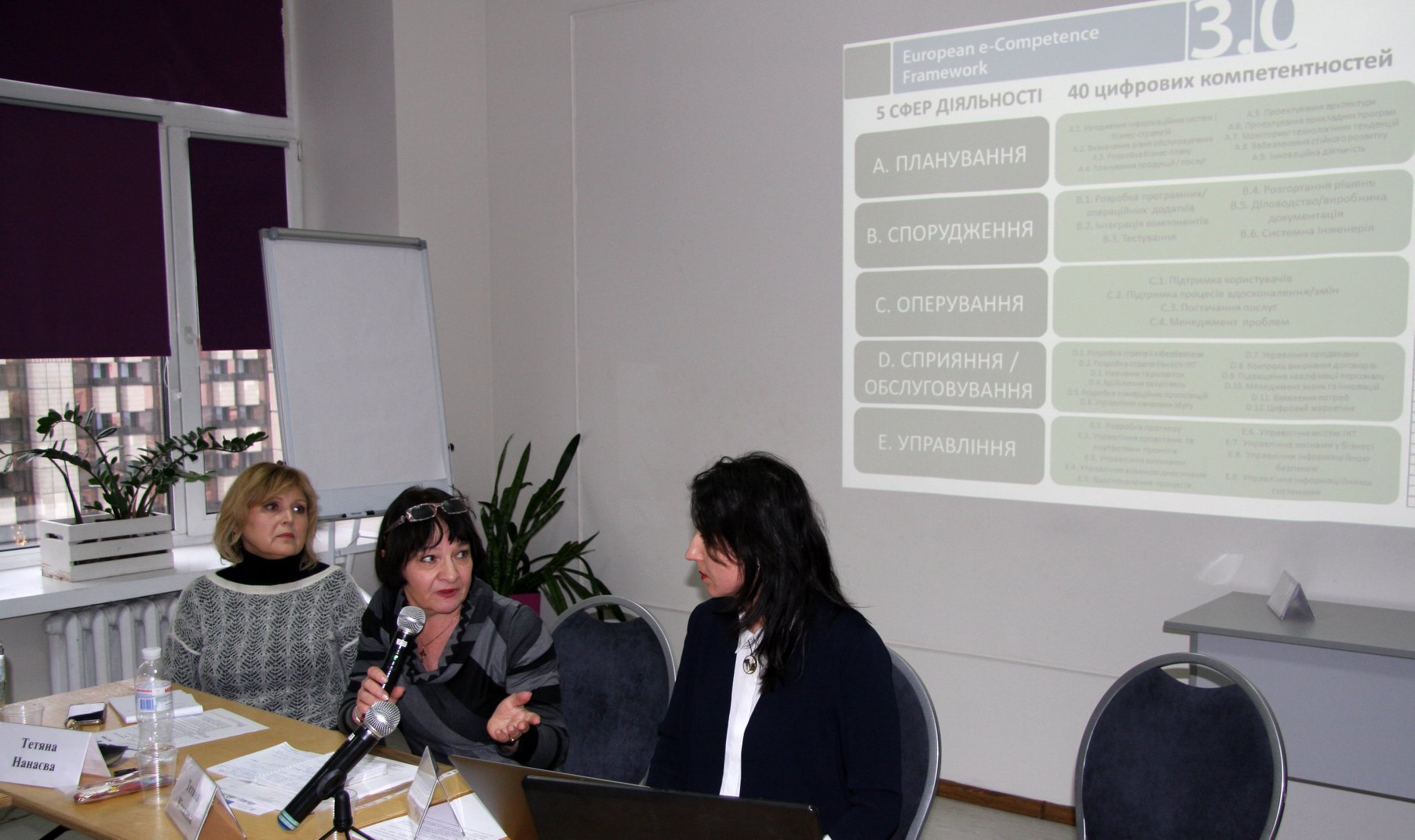 Олена Сирота запропонували можливі механізми запровадження освітніх і професійних стандартів в ІКТ сфері на базі e-Competence Framework, а також обговорили проблемні питання та виклики даного процесу.