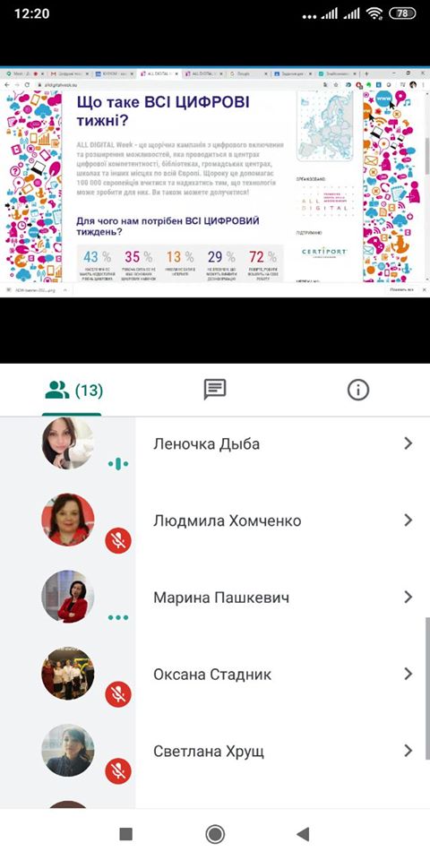 Під час тренінгів в умовах карантину учасники обговорили та візуалізували уявлення й очікування від дистанційного навчання, довідались про сервіси пакету Google Suite for Education та можливості його використання в Університеті культури, протестували кілька інтерактивних інструментів освітньої гейміфікації, а також корисні можливості Google Classroom для навчання студентів.
