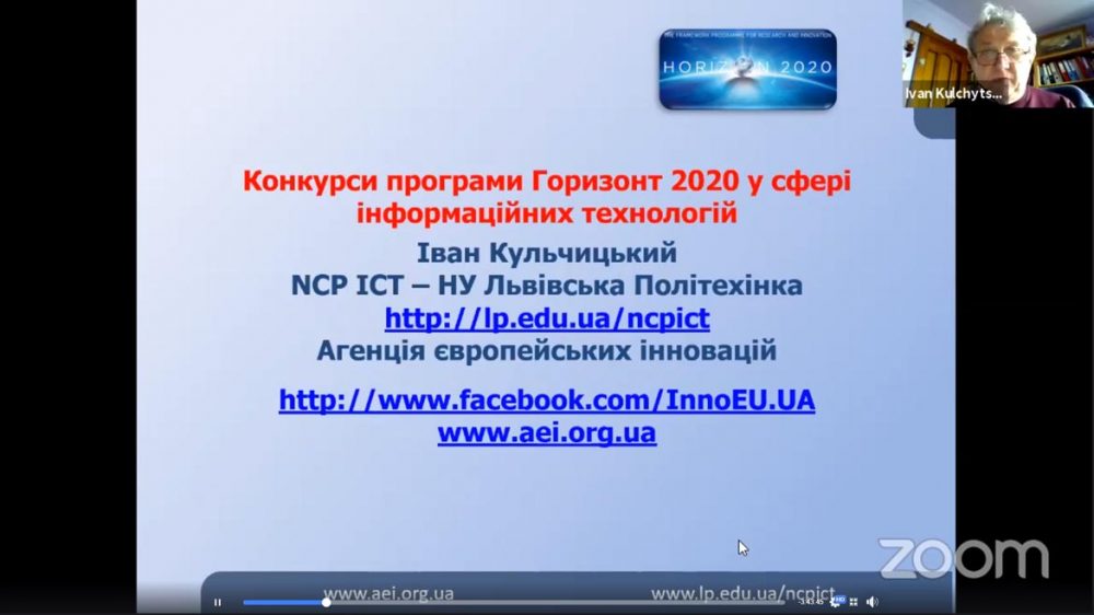 Іван Кульчицький, президент ГО «Агенція європейських інновацій», керівник національного контактного пункту програми «Горизонт 2020» за напрямом «Інформаційні та комунікаційні технології», під час доповіді на тему «Конкурси програми «Горизонт 2020» у сфері інформаційних технологій» захопив учасників можливостями грантового фінансування проєктів і розповів, чому варто подавати заявки та як шукати партнерів.