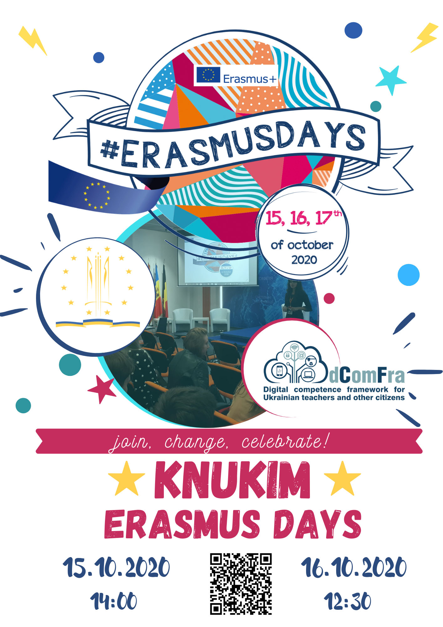 У рамках флешмобу #ErasmusDays та #Ukrainian Erasmus+ Marathon Київський національний університет культури і мистецтв провів в онлайн-форматі InfoDay проєкту #dComFra: круглий стіл «Цифрове сьогодення та майбутнє», опитування щодо цифрових компетентностей і вікторину на тему можливостей програми Еразмус+ та цифрового сьогодення України і Європи.