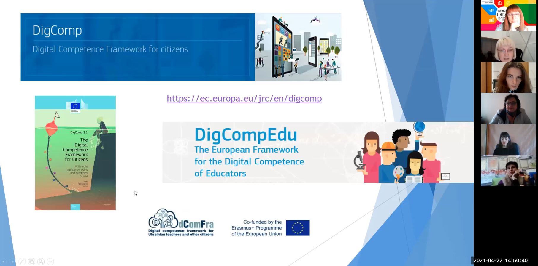 Відкрила пленарне засідання кандидат педагогічних наук, доцент, декан факультету дистанційного навчання Олена Чайковська з доповіддю на тему «Національна рамка цифрових компетентностей для громадян України», де ознайомила присутніх із результатами діяльності проєкту програми Еразмус+ «dComFra – Digital competence framework for Ukrainian teachers and other citizens», № 598236-EPP-1-2018-1-LT-EPPKA2-CBHE-SP. Зокрема, Олена Антонівна зазначила, що Рамка цифрових компетентностей громадян, яку оприлюднено Міністерством цифрової трансформації 30 березня 2021 року для публічного обговорення, була адаптована українськими експертами в рамках реалізації даного проєкту dComFra.