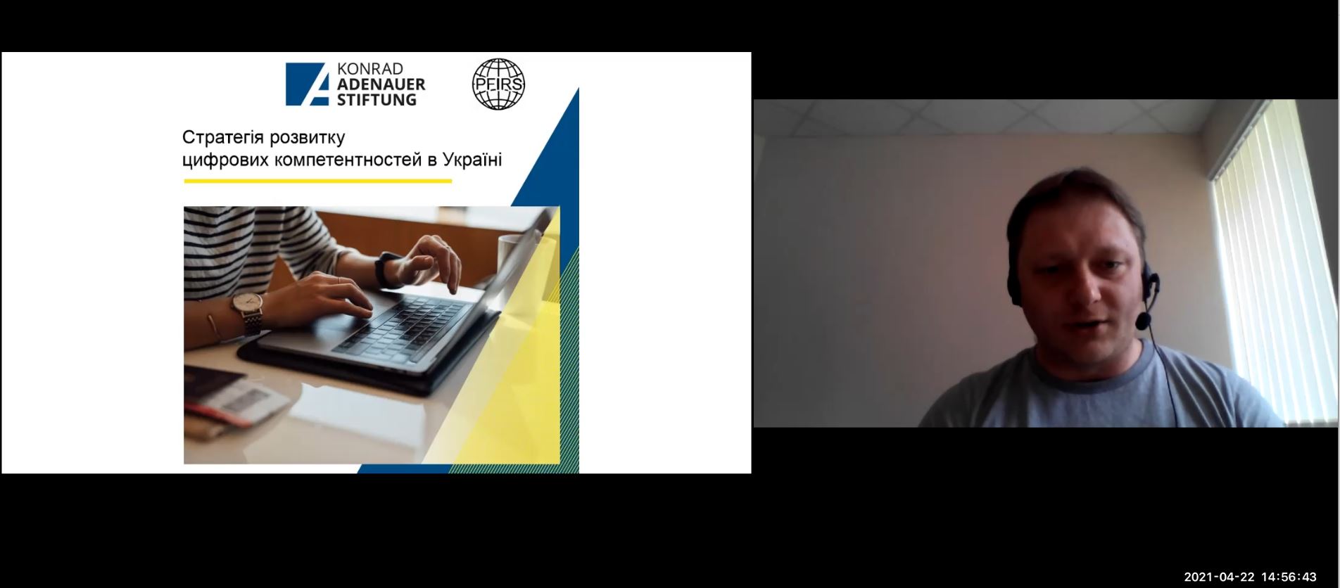 Максим Корявець, керівник Поліського фонду міжнародних та регіональних досліджень (м. Чернігів, Україна) у доповіді «Цифрові навички та компетентності в різних секторах суспільства: формуючи нову стратегію» окреслив позитивні та негативні аспекти розвитку цифрових навичок і компетентностей в Україні та запропонував долучитися до експертного обговорення за зазначеною темою.