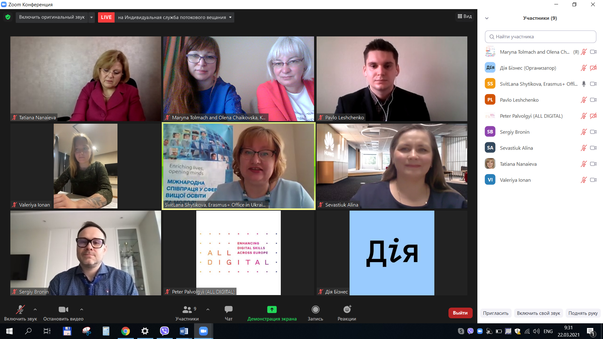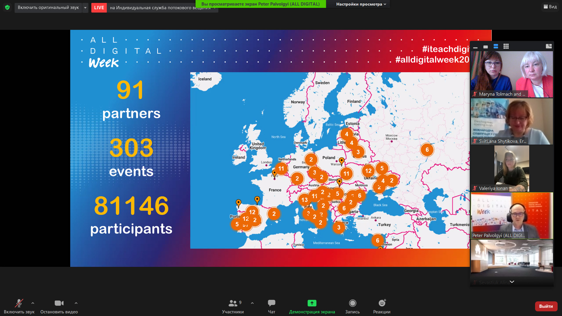 До привітань щодо урочистості долучилась декан факультету дистанційного навчання Університету культури і співорганізаторка події Олена Чайковська: «Вітаю вас, мої шановні колеги! Два роки тому Україна вперше взяла участь у AllDigitalWeek. Відтоді українські події з’являються на інтерактивній карті подій світу. Я дуже рада, що кількість українських учасників зростає з року в рік! Пандемія Covid-19 стала потужним каталізатором підвищення рівня цифрової компетентності для всіх нас. Сьогодні цифрові технології не тільки змінюють світ, але і зберігають його», – сказала Олена Антонівна і передала слово заступниці декана факультету дистанційного навчання, Університету культури, членкині робочої групи проєкту dComFra Марині Толмач, яка зауважила: «Пандемія призвела до значних змін у багатьох сферах суспільного життя. Серед проблем – забезпечення доступу до освіти та культури в контексті карантинних обмежень.