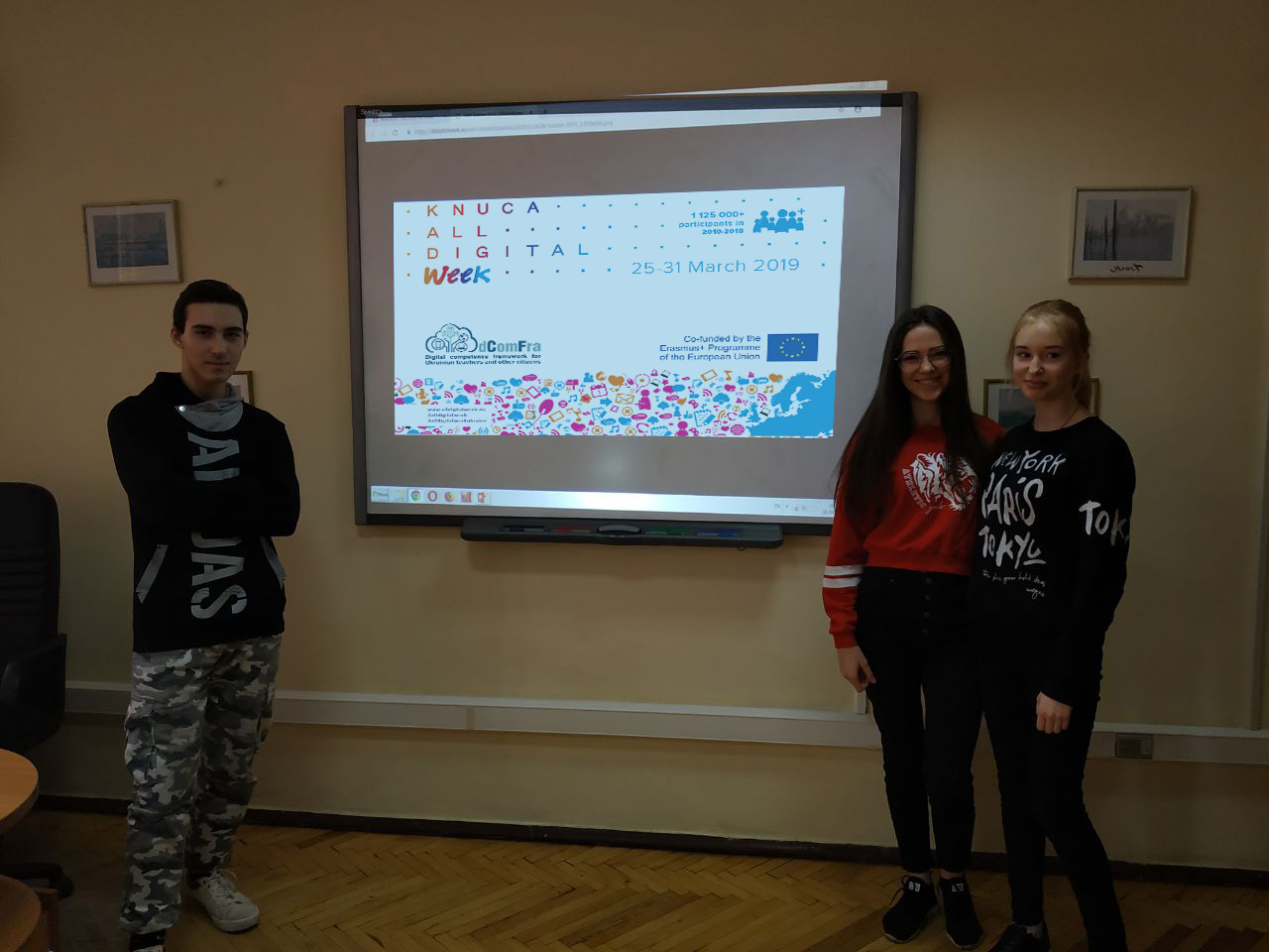 Як і у всій Європі, святкувати почати з 25 березня з події «AllDigitalWeek in KNUCA: infoday». Олена Чайковська, завідувач кафедри комп’ютерних наук та менеджер проекту Erasmus+ dComFra у КНУКіМ, розповіла студентам про задачі Цифрового тижня та акцентувала увагу на важливості цифрових навичок для студентів усіх спеціальностей.