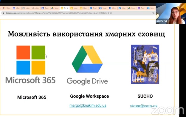 Актуальною також була інформація про можливості використання хмарних сховищ, а також про можливості підключення Google Workspace for Education в освітніх установах, що надає безлімітний простір для зберігання файлів.