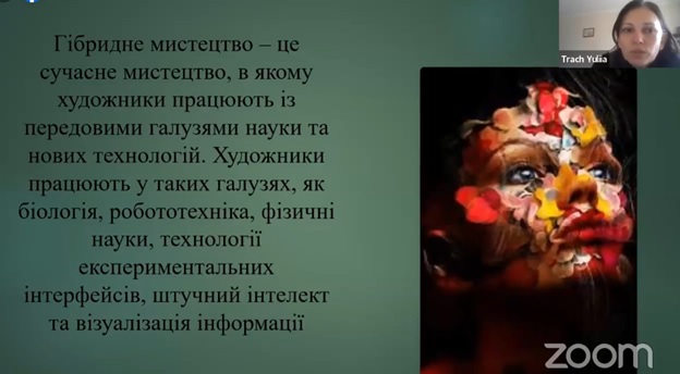 Сплеск позитивних емоцій в учасників конференції був під час презентації доповіді Юлії Трач, доктора культурології, професора кафедри комп’ютерних наук КНУКіМ на тему: «Гібридне мистецтво як результат «креативної гібридизації» в сучасному мистецтві».