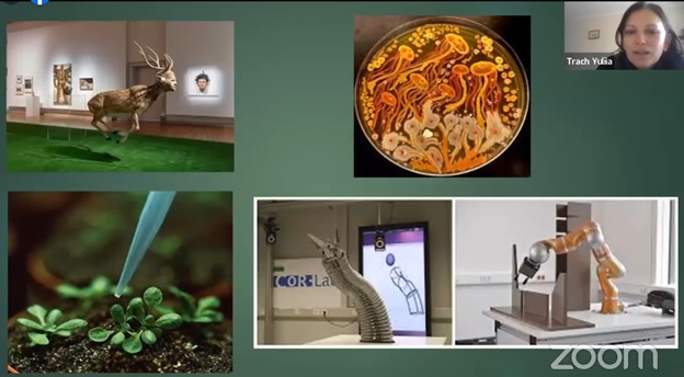 Доповідь була присвячена гібридному мистецтву – напряму, представники якого використовують у своїй роботі новітні, в тому числі й цифрові технології. Адже мистецтво і технології протягом усієї історії людства постійно взаємодіяли один з одним, збагачуючи і направляючи один одного. Але в сучасному суспільстві ця взаємодія набула найбільш виразних ознак. Мистецтво вимушене по-новому реагувати на трансформації й інновації в суспільному житті – йдеться про те, що аудиторія стає дедалі розумнішою і мистецтво починає замислюватися над тим, що з цією аудиторією треба говорити складнішою художньою мовою.