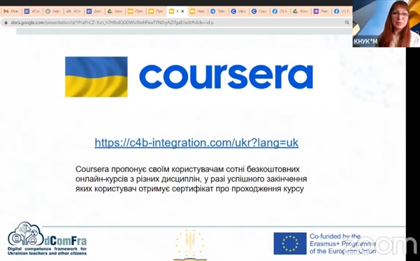 Марина Толмач представила багато цікавих та корисних платформ, які надають сьогодні безкоштовний доступ до своїх матеріалів та курсів.