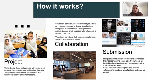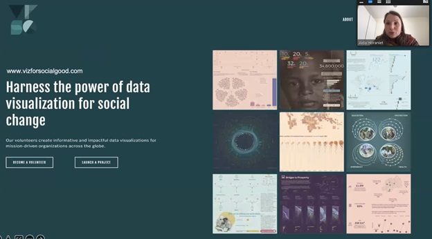 Aida Horaniet Ibañez, Director Community Engagement at Viz for Social Good (and Doctoral Researcher at C2dh in Data Visualization), розповіла історії успіхів кращих проєктів і закликала використовувати силу візуалізації даних для соціальних змін та приєднатися до волонтерського руху Viz for Social Good, щоб змінити світ на краще.