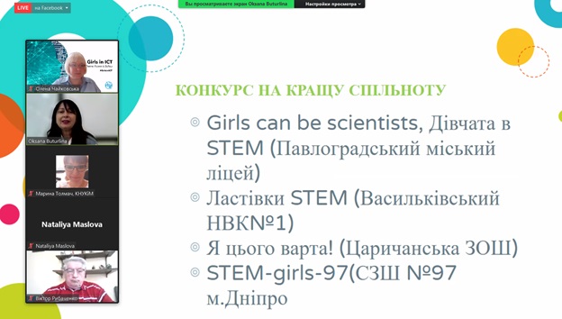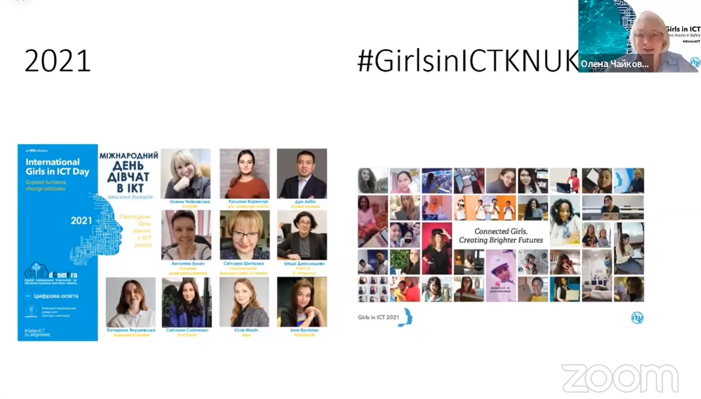 Згуртувавшись на онлайн-платформі, присутні заслухали вітальне відеозвернення генерального секретаря Міжнародного союзу електрозв’язку Хоулінь Чжао, який зазначив, що сьогодні технології та інновації є ключовими рушійними силами все більш глобального та цифрового суспільства. Але, на жаль, кількість жінок серед спеціалістів у галузі STEM (наука, технології, інженерія та математика) – менше 30%. Тому основна мета глобальної ініціативи «Girls in ICT» – розвивати цифрові навички молодих жінок і дівчат та сприяти їхній кар’єрі у сфері STEM, зокрема, ІКТ.