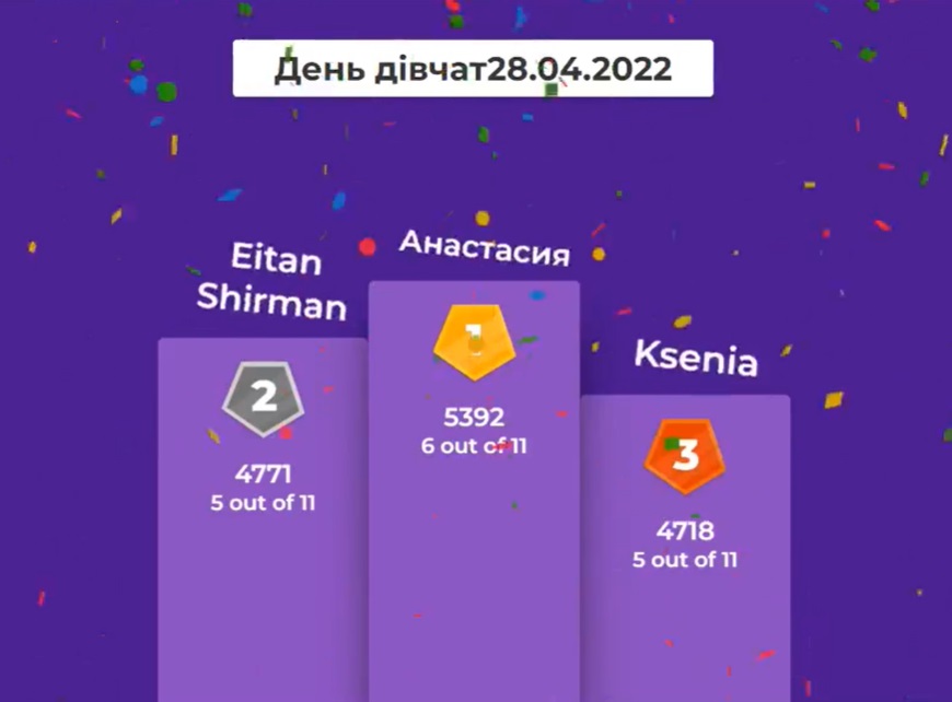 Наприкінці онлайн-зустрічі кафедра комп’ютерних наук влаштувала захоплюючу вікторину щодо історії святкування Міжнародного дня «Дівчата в ІКТ», за підсумками якої переможниця отримала мотиваційну книгу «Код Упевненості для дівчат» (автори Кетті Кей, Клер Шипман).